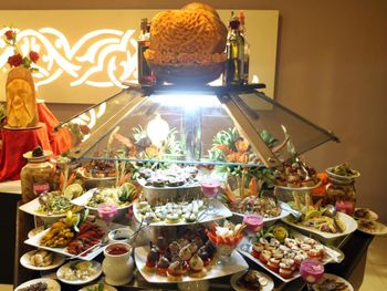 В курортном отеле работают 5 ресторанов с обслуживанием по меню, в которых готовят популярные блюда ливанской, русской и итальянской кухни. Перед зданием отеля открыт китайский ресторан.