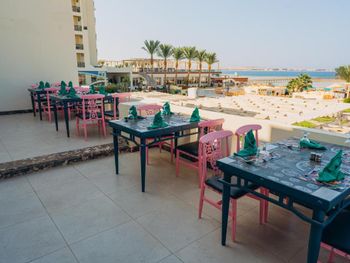 Отвратительное питание, есть просто нечего, совершенно не вкусно. На улице жарят гриль, но раздающий его работник жадничает, как-будто от сердца отрывает люля-кебаб и сосиски. Грустная картина, которая оставляет очень неприятное впечатление. Все лежаки у бассейнов заняты с самого раннего утра и до вечера, причем, на них никого пол дня нет, никто эти полотенца не убирает. Это тоже отвратительно. Ну и конечно самого низкого качества алкоголь, который пить невозможно. Впечатление, что отель выживает как может и экономит на всем, но их можно понять, такая сейчас ситуация в Египте.