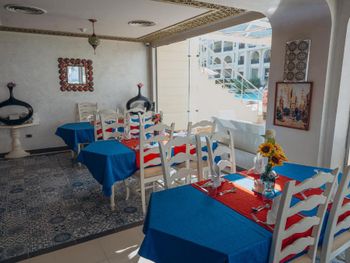 Приехали в час ночи,регистрация проходила довольно долго.Менеджер не предложил приветственные напитки,при условии,что бар в 1 метре от стойки регистрации и работает он круглосуточно. У нас был забронирован номер с видом на море и бассейн,но нам дали только с видом на море Уборка в номере отвратительная,приходилось уборщика номеров приглашать чтоб снова вытирал или убирал,забывал класть туалетные принадлежности. В ресторане вечно не хватает свободных столов,посуда вся со сколами На пирсе лежаки для двух отелей и их катастрофически не хватает,либо их убрать совсем,либо добавить Анимация на 3+ Расположение не очень удобное,на окраине шахль хашиша