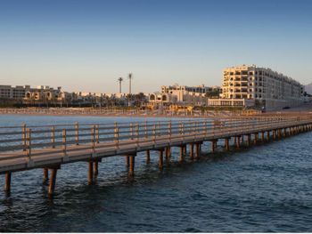 прекрасный отель в закрытом заливе. 5 бассейнов, один с подогревом. достойная еда: курица, говядина, рыба и другие морепродукты. фрукты были простые (бананы, апельсины, дыня и тд), тк ещё был не сезон. места у воды было достаточно и у бассейнов, и на море. возле берега мелко (в момент отлива море уходит на приличное отдаление), но есть Пирс, с которого можно поплавать. с пирса также отлично видно местную фауну: морских звёзд, ежей, рыб, скатов (!), мурен. можно позаниматься снорклингом и дайвингом. на удивление , из нескольких отелей вокруг, вечерняя программа была только у нас. что было хорошо для нас. нас поселили в family room вместо делюкс без доплаты, что было очень приятно. мой муж постился (тк шёл месяц Рамадан) и отзывчивый персонал приносил ему Сухур утром в номер, чтобы он мог поесть. персонал в целом очень приятный, ненавязчивый, общительный, готовый помочь. единственное, чего не хватало в номере -халатов и ватных палочек.