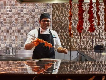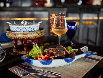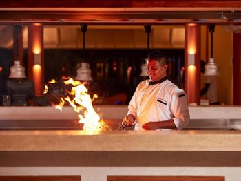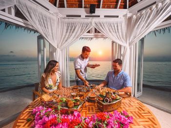 Гостям предлагается завтрак «шведский стол», континентальный завтрак или вегетарианский завтрак. При Sun Siyam Olhuveli работает ресторан, где подают блюда индийской кухни, морепродукты и стейки. По запросу для гостей приготовят вегетарианские, безлактозные и веганские блюда.