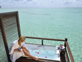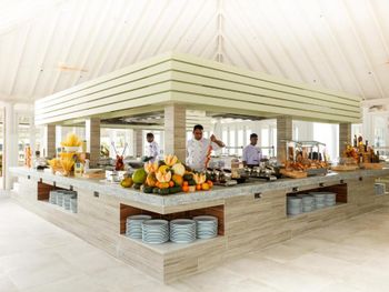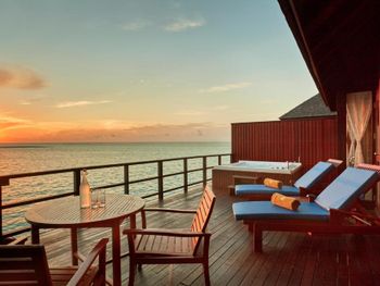 Я не первый раз на Мальдивах, есть с чем сравнивать. Снорклинг грустный, рыбок практически нет. Еда однообразная, морепродуктов и рыбы нет, в основе курица. Из фруктов папайя вкусная, но не каждый день. Манго давали один раз и по несколько маленьких кусочков, второй раз если подойдешь, то не дают. Рассчитывали, что наедимся фруктов, но… Мало столиков на террасе, на ужине не хочется сидеть внутри. Попросили вынести столики на террасу , так как их много свободных внутри, отказали. Все люди выходят на террасу с желанием посидеть у воды, но все вынуждены идти внутрь, хотя место на террасе есть еще для 6-8 столиков. Номера очень уставшие. У нас была вилла на воде. Кондиционер плохо работал, либо вообще не работал, вызывали техников. В санузле, в душевой пахнет ужасно испражнениями. Приходилось принимать душ на террасе, но это не очень комфортно, стоять раздетой под солнцем, тем более там плавают люди, катаются на скутерах. Проводят занятия йогой без навеса, под палящим солнцем. Нет площадки для проведения, в результате ты весь потный и в песке. Традиционно оплатили ужин с шампанским и морепродуктами на пляже. В результате дали только кальмаров и омаров. Грустный выбор. В общем, не рекомендую этот отель. Никогда не вернусь туда.