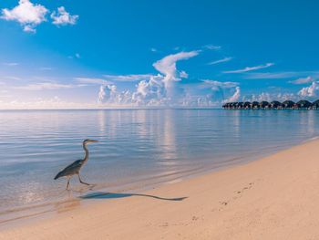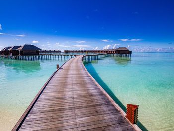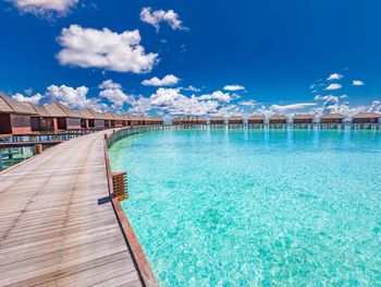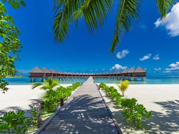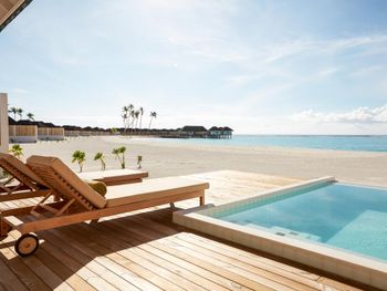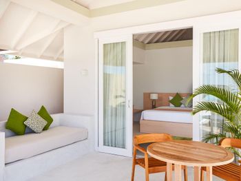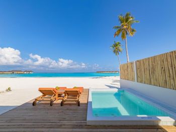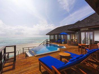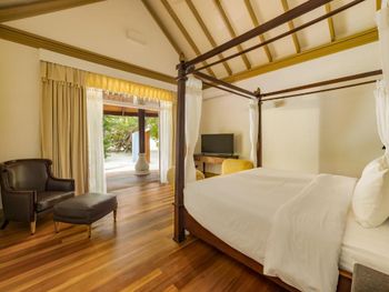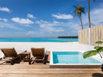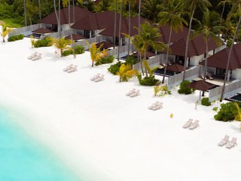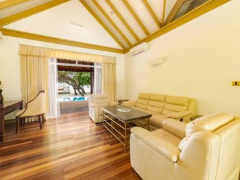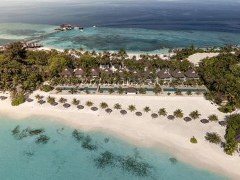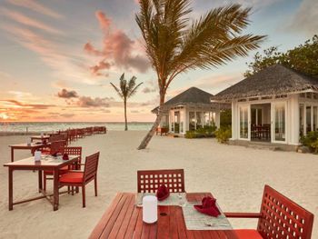 Были с 7 по 22 января 2021. Бич вилла без бассейна. Старовата, но не критически. До моря реально метров 10. Залив без кораллов, спокойная вода. Кораллы далеко, с другой стороны острова, идти по понтону. Приехали в переполненный отель. В ресторане вообще не поняли, что происходит. Народу толпы, критически недостаточно официантов. На любую раздачу еды очередь. Столы грязные. Убирала грязную посуду на соседний стол, чтобы посадить семью. Напитки несли мин по 15. Часто забывали про заказ. Сама еда плохая, турецкая «трешка». И вот так мы прожили неделю. Были сильно расстроены, тк без билетов отель обошёлся порядка 750 тр на 2 нед. Природа, погода класс, остальное плохо. Вторую неделю нам невероятно повезло, если можно так сказать. В отеле кто-то заболел ковидом. Туристы только выезжали, но не приезжали. Наконец-то битва за еду в столовке прекратилась. Официанты стали все успевать. Еда по качеству лучше не стала, но добавились какие-то более-менее разнообразные блюда, появился выбор. Вообще персонал хороший, старается, просто его критически недостаточно. Русский гид Ольга тоже хорошая. В общем, дай Бог здоровья этому ковидному больному. Благодаря ему впечатления первой недели скрасились. ОБЯЗАТЕЛЬНО берите all inclusive или полный пансион. Цены на все дикие. Ужин в индийском ресторане на 2 взр и 2 дет - 350 долл. Плохие коктейли в баре - по 16 долл. Кокос - 10 долл. Вывод: наплыв русских превратил элитный отдых на Мальдивах в 3-звездочную Турцию. С тоской вспоминаем две прошлые поездки. Надеюсь, после пандемии все снова распределятся по тайландам и тд и потерянное качество отдыха на Мальдивах вернется.