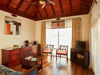 Сильно испортил впечатление номер delux room, в который нас поселили. Это оказались самые старые и обветшалые дома на острове. Причем таких домов было около трех, остальные от них отличались некоторым ремонтом. Номер был достаточно большой, с хорошим балконом, но сильно потрепанный и грязноватый из-за этого. Но главная его фишка - это прекрасная слышимость на 2 этаже соседей по этажу. И, внимание, главный прикол - соседний номер сдавался ПОСУТОЧНО! В общем после трех бессонных ночей, пошли на ресепшн и нам поменяли дом и номер на очень хорошие. Жаль, что к этому времени уже прошла половина нашего пребывания в отеле. И еще одно замечание. Все траты в отеле записываются на номер для последующей оплаты при выезде. Внимательно нужно смотреть список для оплаты. Нам в первый день пребывания вписали посещение какого-то гриль ресторана на 100 с лишним баксов, о котором мы ничего не знали. Когда мы на это указали, эти затраты вычеркнули, но тут же добавили плату за обед в день выезда. Хотя в их же выездной бумаге было указано, что обед в этот день входит в наш пакет. Я не буду комментировать перечисленные выше неприятности, по-моему и так все понятно. Скажу лишь, что были в очень многих странах, но такого что-то не припомню.