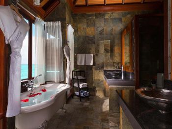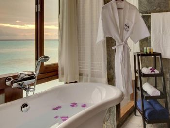 Питание: - Шведский стол однообразный, особенно если оставаться больше чем на несколько дней. - Коктейли не вкусные, напитки — самые обычные. Запахи на территории: - Между островами есть лагуна, откуда доносился неприятный запах, особенно при ветре. - Иногда был даже запах канализации — портил впечатление. Разница в обслуживании на разных островах: - На основном острове (Sunset Beach Pavilion) обслуживание хуже: гостей больше, официанты часто меняются, персонал менее внимательный. Подводный мир: - Рыбки есть, но подводный мир не такой насыщенный, как хотелось бы. Возможно, связано с погодой. Интернет: - Очень слабый (4–8 Мбит), местами полностью пропадал. Разные условия в мини-барах: - В Water Villa: есть Pringles и Coca-Cola Zero. - В Grand Beach Villa и Sunset Beach Pavilion — нет. Мелочь, но чувствуется разница.