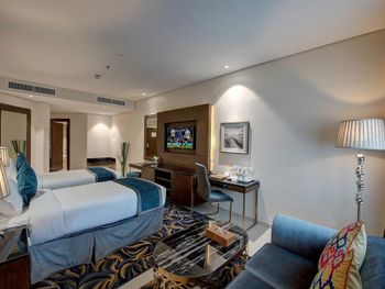 В номерах Omega Hotel Dubai установлен кондиционер, сейф и телевизор с плоским экраном. Среди прочих удобств — платяной шкаф, чайник и холодильник, а также собственная ванная комната с душем. В собственной ванной комнате есть ванна, бесплатные туалетно-косметические принадлежности и фен. Гостям Omega Hotel Dubai предоставляются постельное белье и полотенца.