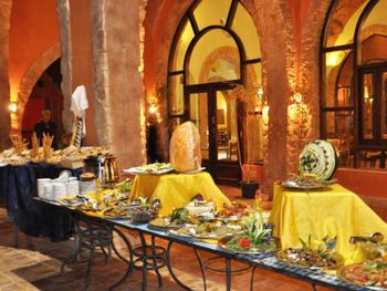 Guests can choose from the different cuisines served in the hotel’s main restaurant. Guests can enjoy drinks at the bars in the lobby, beside the pool and on the beach.