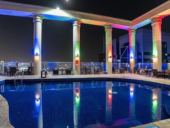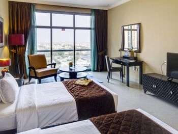 Отель уже уставший, однако расположение и персонал делают его очень даже приемлемым. Заселили около 11 утра без доплат, разрешили поздний выезд до 17-00 за 100 дирхам. Бельё чистое, кондиционер можно настроить, чтобы не было так холодно. Горячая вода присутствует, как и интернет. Бассейн наверху ни о чем, ещё и закрывается в 6 вечера.