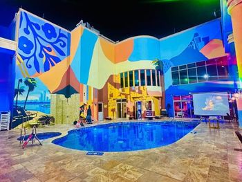 Когда отдыхающие собираются отдохнуть у бассейна, хотелось бы чтобы рабочие не ходили, не работали у бассейна