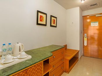 Завтрак шведский стол, но почти вся пища острая, учтите это при брони ,если не едите острую пищу, как мы , то останетесь без завтрака. Бассейн всего 1,3 метра, тренажерный зал маленький. Разочаровал номер с одной кроватью, при брони брала 2 односпальные кровати, в этом районе были другие варианты с одной кроватью, я специально бронировала тут из-за 2-х отдельных кроватей, причем писала в отель несколько раз о том что мне нужны 2 кровати, но увы была одна кровать. Кстати халатов тут нет, учтите при брони, а тапочки и зубную щётку приходится выпрашивать. Считаю что отель не заслуживает свои 4 звёзды, он даже одну звезду не заслуживает так как вид и сервис не соответствует. Я не советую бронировать этот отель, за эти деньги лучше другой вариант взять.