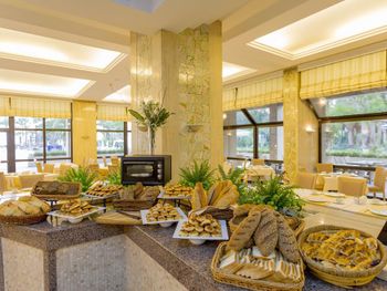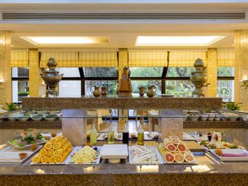 В ресторане La Pergola, накрывающем "шведский стол", можно пообедать на открытом воздухе. Блюда по меню предлагаются в ресторане Mehtap c панорамным видом на Средиземное море. Вечером можно отдохнуть с напитками и послушать живую фортепианную музыку в лобби-баре.