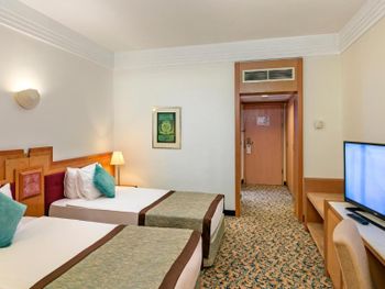 Кормят очень вкусно,большой бассейн и большие чистые номера,рядом пляж и если кто не хочет идти пешком есть трансфер до пляжа