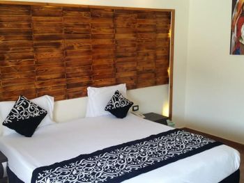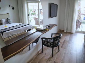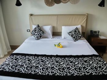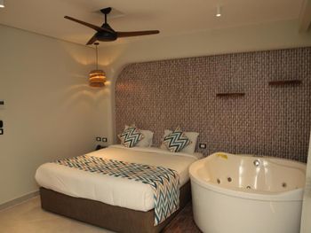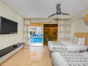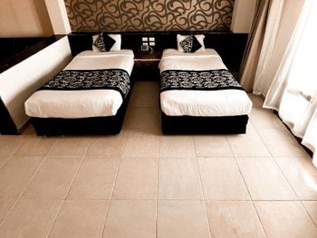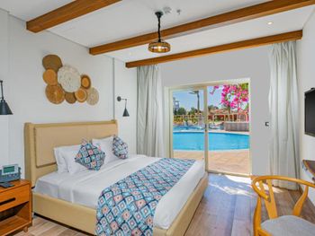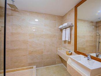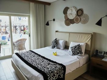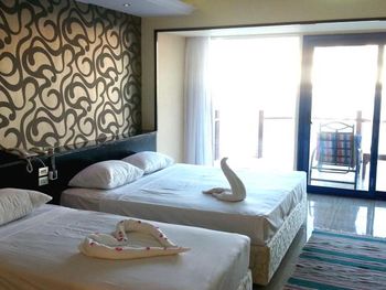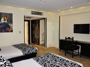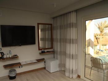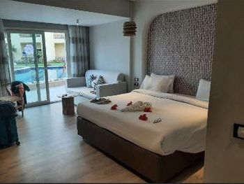 При заселении сотрудник сказал, что «повысил» нам уровень номера. Но номер прям древний. Но на полу в номере был толстый слой пыли, обои ободраны, из всех розеток в номере работало только 2. В душе - плесень на стенах, нет дверки (судя по дыркам для креплений - она там когда-то была). В ванной затирка и замазка лежит местами. Комары. Просто тьма комаров и она - не из окна или улицы - они уже в вентиляции обитают. Нас заселили в номер с видом на бассейн. На улице очень громко прямо в наши окна орала музыка. С нами путешествовал маленький ребенок. Музыка орала очень громко и в 10:00 я позвонила на ресепшен. Мне обещали, что сделают тише. Через 20 минут я позвонила снова и снова эффекта не было. Пришлось идти в пижаме на ресепшен и требовать, чтобы это прекратилось! Мне ответили: я попросил, но гости шумные, хотят танцевать. В итоге музыку выключили только после сцены! Чем думал сотрудник ресепшена про заселении видя, что у нас малыш, зная, что музыка ночью орет и все равно заселив именно в этот номер, да еще так это выставив, будто он нам одолжение делает - мне не понятно.