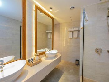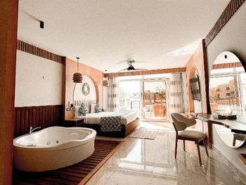 Очень понравилось отношение персонала. На въезде предложили улучшить категорию номера, и вместо просто номера с джакузи я получила супер люкс!!! Очень приятно))) так же я заезжала на один день, но попросила накрыть ужин в ресторане Аля карт. По правилам бронировать его нужно за день до. Но для меня сделали исключение и был шикарный ужин в ресторане традиционном!!! Очень чисто, вкусно (еды не супер много, но очень качественно, вкусно и красиво 🥰) а ещё ходит своя лодочка на пляж))