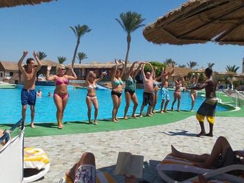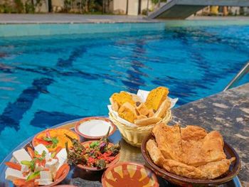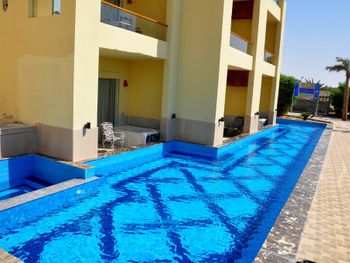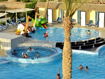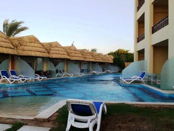грязь и разруха. основной бассейн докончат не наливали, экономили деньги. всё время нашего прибывания была стройка. снесли несколько бунгало. начали строить заново, поэтому было шумно и грязно, детский бассейн из-за стройки не функционировал. еда: одна и также котлетка ждала нас в первый день на гриле, во второй день та же уже лежала на противне, на третий день часть была в лазанье (очень запоминающееся обили чеснока было в них и куски со следами грильяж попадались), ну а в четвёртый день они ждали нас на обед на пляже у моря! бассейн общий ледяной. аниматоров нет вообще. для детей никаких развлечений. в баре у бассейна напитки заканчивались уже к 12:40. кальянщик предложил нам дать с собой в номер, где нет плиты и нагревательных элементов, пачку холодных углей, чтобы мы их меняли. когда увидел в руках 20$ цена кальяна с 3$ выросла до 15$, но забивать он его не умеет. с наших друзей всё время требовали чаевые. в лавочке сувениров цены в 5 раз выше, чем рядом с пирамидами. все хотят потрогать ваших детей, что очень напрягало. в душе ночью встретила таракана. в душе неприятно пахло! из трубы жуткая вонь.