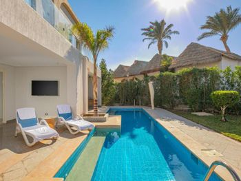 К услугам гостей 4-звездочного курортного отеля частный пляж на берегу Красного моря, номера и бунгало с кондиционером с террасой Среди удобств открытый бассейн, окруженный ландшафтным садом, и оздоровительный клуб.