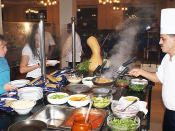 Кормили на троечку: много разных блюд, но невкусно. Продавцы в местных магазинах и массажист навязчивые.