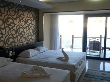 персонал! очень вежливый, отзывчивый! двери открывали, помогали с напитками! уборка в номере каждый день и очень вежливый парень убирался! лодочка возила нас на пляж по расписанию раз в 1 час и забирала. на пляже крутые бесплатные лежаки, но бар почему то, вопреки всем уверениям руководства, почти весь платный. вкусные сладости на столе.