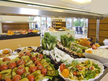 Достаточно большой выбор блюд в меню, много овощей, свежих, тушеных, маринованных, сезонные фрукты, дессерты, местные напитки.
