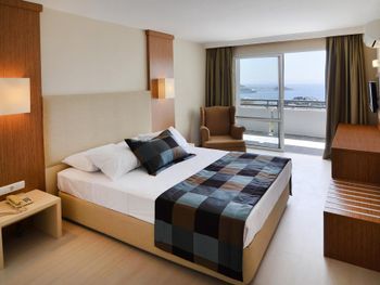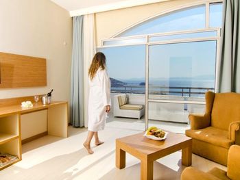 В просторных современных номерах есть балкон, кондиционер, телевизор с плоским экраном и холодильник. Из номеров открывается вид на море или Кушадасы. В собственной ванной комнате предоставляются бесплатные туалетные принадлежности и халаты.