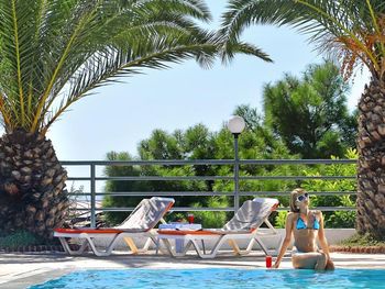 Бассейн очень маленький, сама здание пятиэтажное, то есть туристов очень много, поэтому в бассейне было тесно. До море, пешком 15 минут, ещё за лежанку надо платить, ассортимент продуктов питания не широк. То есть за эту цену можно было отдохнуть в лучшем месте, спасибо.
