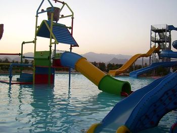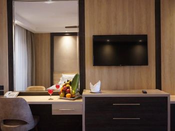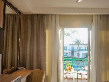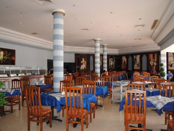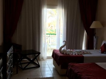 Несмотря на улыбки персонала, постоянно не пропадало ощущение «дойной коровы», за поселение в номер нужно было дать чаевых на рецепшене (видимо мало дали, поселили в шумный убитый номер, хотя просили тишину) что бы хорошо убрали опять дать денег, что бы поняли о чем просим и тд! При отъезде были крайне удивлены совершенно странной ситуацией, оказывается в отеле существует система разноцветных браслетов (свои видимо и чужие) уж в чем разница цветов (оранжевый, зелёный, белый ) нам так и осталась не ведома, но как оказалось у нас были зелёные браслеты, которые не дают право на бесплатные алкогольные напитки в баре, хотя для нас алкоголь был не важен и об этом мы узнали при отъезде случайно спросив на рецепшене что это за разница цвета у постояльцев!!!! Хотя оплата за номер была сделана полностью за весь инклюзив, включая все!! Опять таки решили что дали мало чаевых при заселении )) Часть отеля находиться в ремонте, периодически было слышна работа инструментов строительных, аквапарк не работал. Расположение- отдельная история- на окраине города, выходишь из отеля попадаешь на строительную свалку, заброшенные отели и дома и пыльную дорогу! до моря минут 30 идти пешком на городской пляж. У отеля есть шаттл на пляж свой, но будьте осторожны, при спуске по металической лестнице в море, в ступенях дыры, порезали ноги не увидев этого. Вообщем впечатление от отеля- печаль и запустение!