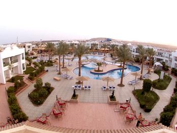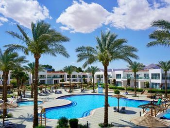 Везде очень грязно, в бассейне плавает куча мусора, вода не фильтруется, вокруг бассейна плитка вся в мусоре, мы разок сходили туда и больше не рискнули) везде окурки сигарет на улице, под кроватью нашли тоже парочку, в номерах находиться неприятно. Отель очень старый, все потрепанное, будто в санаторий приехал, зеркала в холлах все заляпанные, мусорки забиты. Вай фая в номере нет, даже платного. Еще был один неприятный момент, на территории отеля очень много кошек, так вот, один из сотрудников отеля пнул кошку, мы сделали ему замечание, в ответ на это увидели средний палец. Сам отель находится на отшибе, вокруг ничего нет вообще, только свалка. За эту стоимость есть отели и получше в Шарм эль Шейхе) еще и все включено будет) Не советуем вообще