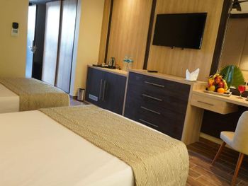 я считаю, что сервису надо как-то с ценами быть аккуратнее. номер на 3-х стоил около 350+~ сборы, но давайте серьезно, сборы сколько?! я заплатила 440 и наглый портье вымогал 20 допом за некий номер. номер с чем?? в отеле нет горячей воды) удивила?! бассейн без подогрева?! или помойся в душе без него. портье долго не понимал почему я беснуюсь. букинг, трехместный номер был на 2 взр, 2 реб 7 и 1-4 лет?! а как вам ответ, что таких номеров нет?! и мне за бедумные бабки внесут кровать допом?! нормально? я бронировала через вас и вопрос к вам , что вы размещаете? уборка 2 раз и это посто выкинутое ведро. мусор на полу был до нас и остался. потом портьер мямлил про некий возврат дс, но благополучно свинтил ща пару дней до отьезда. а его коллеги «ничего не знают». букингу за инфу не соответствующую действительности-1 балл, отелю 2,5