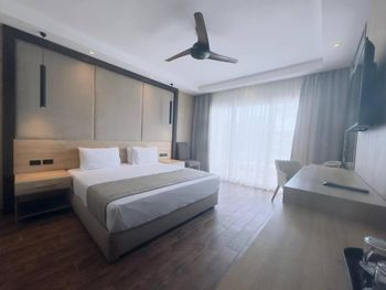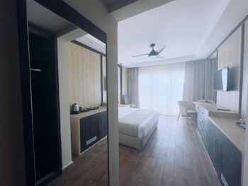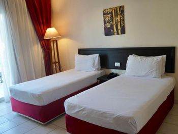 Отель вдалеке от дороги, вечером до основной трассы идти по темноте. Персонал плохо понимает и русский, и английский. В номере была ванная, которая постоянно протекала на пол, в ванной комнате после принятия душа всегда на полу была вода. Жалобы не помогли, недостаток не устранили до конца нашего пребывания. Одинаковые завтраки. Персонал в столовой без перчаток. В аквапарке ступени на горку в песке и грязи, не убираются.