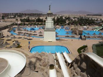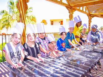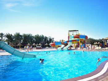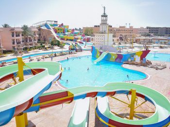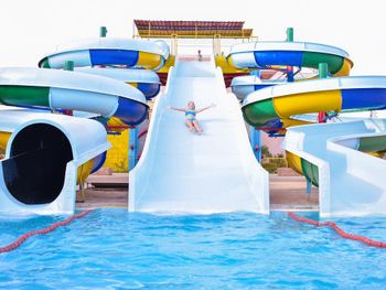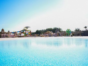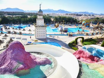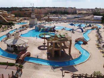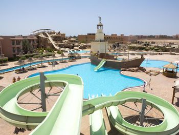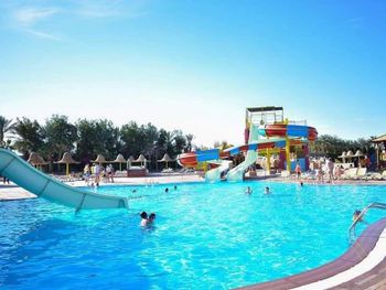 Приехали хотели Аква парк а основное для детей не работает , да и для взрослых . Из всего наверно 9 горок только . Никого из смотрящих нет , на горках напор воды слабый , еле едешь руками толкаешься. Качество ужасное стыки все в царапинах после катания. Хорошо что взяли завтрак ужин , потому что еда на самом слабом уровне и ресторан выглядит как общепит столовка , не уютно , шумно и просишь вилки салфетки , к началу не пришел ищешь стол потом стулья потом приборы ( алкоголь точно ужасен и напитки кроме воды ничего нет по факту нормального. Даже кофе моча , хоть бы заварили нормально. За все включено цена как везде 70 $ это очень дорого тут жить ... Не соответствует качество . Многое не работает отель как будто заброшен с виду , территорию видно частично следят. Мало света и развлечений нет тут( через 3 дня стало уже очень скучно и уныло, мы переехали , хорошо что не туром были .