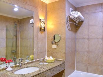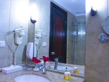 Номер был уставший, убитая ванна, грязные шторы, и вообще уборка номера была плохая, завтрак был не очень- маленький выбор, не было розеток у кроватей, постельное белье было старое и на нем было неприятно спать- оно было в катышках.