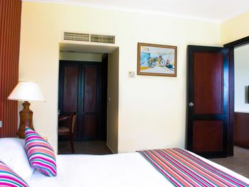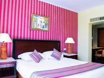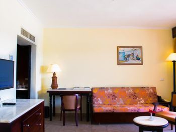 Я никому не рекомендую останавливаться в этом отеле. Мы заселились вечером: в первом предложенном номере не работал душ, во втором конционер и стоял жуткий запах, в третьем были две раздельные кровати, хоть я бронировала с одной большой. А итогу мы вернулись в первый предложенный номер с условием, что на следующий день нам за печь душ или комнату. На следующий день у нас начало литься с потолка прямо в шкаф - оказывается это конденсат от кондиционера. Нас переселили в другую комнату, но там даже после уборки было грязно. Жирные следы на стёклах и стенах, мебель замызганная, в туалете неприятно пахло. Короче кошмар! Номерной фонд в этом отеле ушатанный, публика специфическая, все напитки из за ковида наливают в пластиковые минзурки. Территория большая, но не опрятная. Благо мы останавливались там всего на две ночи перед тем как вернуться домой, весь отпуск там был бы адом.