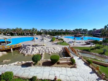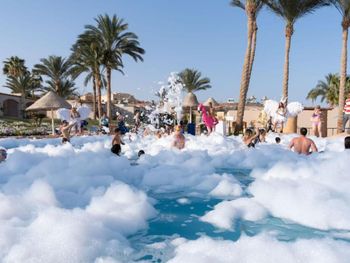 Отдыхали в этом отеле в июле 2021 года. В отеле в основном египтяни, арабы (Саудовская Аравия), казахи, украинцы. Чтоб все хватило в ресторане надо приходить первыми, потом после того как поедят арабские семья, вам уже ничего не достанется. А едят они очень шумно и грязно. В аквапарке горок работает 50%. Анимация никакая, очень скучно. Номера большие, но все обшарпанное. Если хотите тишину и сервис вам точно не сюда. Арабские семья очень большие, много детей (они вечно орут и плачат), живут они по другому расписанию (спать они ложатся не раньше 3 ночи и встают к обеду) и если вам не повезет и соседи будут арабская семья, всё кирдык отдых испорчен.