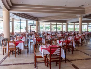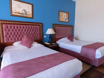 Ни в коем случае не едте в этот отель.Ужас ужасный.Когда мы за ехали в номер я немогла понять что там происходит.Грязь это не то слово...В ванной комнате невымытве зеркала ...туалет после предыдущих посетителей.Сама ванная ржавая ....душ не работал вообще.В комнате не поменяли постель а просто вывернули на изнанку ...Пыл не ввтералась ни когда.Ковер который лежит на полу просто плачит ...от волос и пыли (пылесосов нет)Клоки волос просто катались по полу.Я попросила на ресепшене прийти и убраться .Пришел парень с улыбкой на лице и говорит я уберу уборка его состояла только с вытерания засохшего разлитого кофе на столе под телевизором.Я попросила его дать мне тряпки чистое белье и какую нибудь жидкость для уборки.(Я поработала горничной)😂Другого выхода не было...так как мы заехали на 8 дней и я понимала что лучше не буде. Еда просто ужасная все 8 дней у всей семьи было не старение(кстати у многих гостей)Еды было много но очень много прокисшей и не годной для употребления,фруктов нет вообще,давали один раз арбуз по одному кусочку на селовека,посуда грязная,салфеток не было приходилась бегать просить у официантов(они почему то очень злились но давали одну на человека) Ребят лутше доплатить чуть дороже но поехать в 5 звезд.Отдыхбыл полностью испорчен . Бассейны в аквапарке не чистят вообще везде пластиковые стаканы плавают .горки поломанные и много не работают. Аниматоры (мальчишки)старались...была с ними русская девушка то ли укуреная то ли на нюханая чем то ...