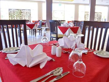 В номерах ужасная грязь. Неизвестно когда там последний раз нормально убирались. На окне и шторах была кровь - видимо кто-то убил комара, и всё так и осталось - кровь, размазанная по стеклу и пятна на тюле! Еле допросилась чтобы в номере убрались, так как останавливалась на 2 дня - сказали уберемся как съедете. В итоге из всей уборки застелили кровать и помыли пол. Ковер скатали вместе со всем мусором на нем, и потом так же расстелили. Еда не вкусная, ни завтрак ни ужин. Вроде ресторан большой, станций много, а есть нечего. Сравнивая с другим отелем набор блюд +- тот же, но готовят не вкусно. Мясо сухое и пересоленное, птица сухая, овощи так себе, десерты химозные. Номер был с видом на бассейн, из-за этого вечером была слышна вся анимационная программа и песни из караоке до 11 вечера