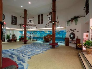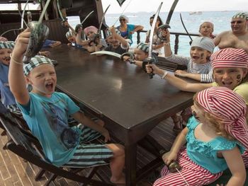 Пиратские путешествия 3 раза в неделю по 2,5 часа за отдельную стоимость с обедом (обед вялая картошка фри, которую многие не едят и сосиски неестественного красного цвета). Путешествия детям нравятся очень, наш ездил три раза! Территория отеля очень зелёная, апельсины, лимоны растут. Много тени. В наш приезд никто ничем не болел, хотя отель был битком. Хорошая детская площадка для детей до 6-7 лет, вечером там все детишки играют. В принципе нормальный отель, но снизила сильно оценку за питание, которое реально испортило впечатление. Тот случай, когда еды вроде много, но есть нечего(