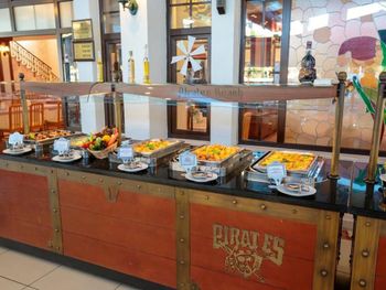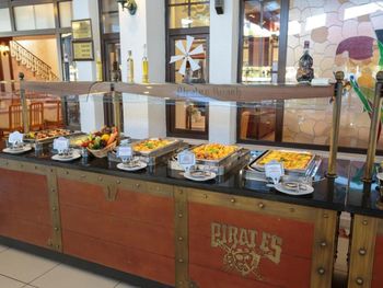 По территории расположено несколько баров, но по факту нормально функционирует только один, в котором всегда большие очереди. В других — либо выбор сильно ограничен, либо персонал отправляет в "главный бар", даже если речь о базовых напитках.