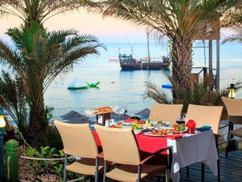 В главном ресторане сервируют открытый «шведский стол». В 4 ресторанах с обслуживанием по меню можно заказать блюда турецкой и итальянской кухни, турецкие кебабы и морепродукты. В баре отеля в течение дня подают различные напитки.