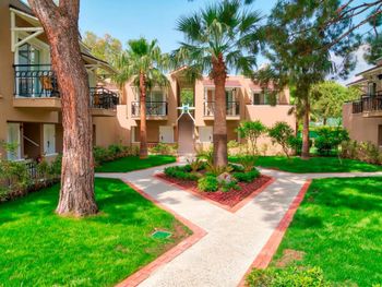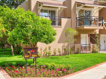 Вместо типичных многоэтажных корпусов здесь двухэтажные домики на несколько номеров, очень большая ухоженная зелёная территория, с цитрусовыми деревьями, бананами, гранатами - очень круто.