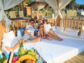 - Лаунж зона с мягкими матрасами на пляже платная. 50 евро в день.