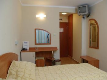 Отель при бронировании указан как 3 звезды , но !! Сам отель 3 звезды- но реально нет , но ресторан при отеле 2, что можно узнать по табличке и сертификату уже на месте ! Нигде конечно эта информация при бронировании не указана . Имели неосторожность взять олинклюзив , так как во всех отелях Европы 3 звезды это вполне приличное проживание и еда , но не в этом отеле . Пол беды , что еда каждый день одно и тоже , так она еще и из испорченных продуктов . Ни 1 вид мяса есть невозможно ! У куриных ножек , которые были каждый день на обед был ярко выраженный трупный запах давно пропавшего мяса , которое пытались замаскировать просто солью . Все очень соленое по этой же причине . Даже от колбасы , которая была на завтраке , пару видов которой вроде выглядело на первый взгляд прилично , не слазили с унитаза . Пытались пропускать завтраки , потом обеды .. никогда в жизни ни в одном месте не было столь отватительной еды , даже в самых дешевых хостелах , это даже не хрючево , это хуже .