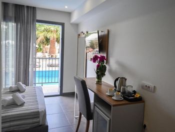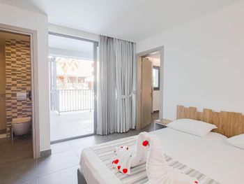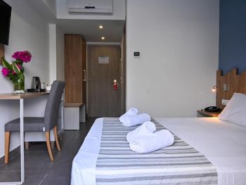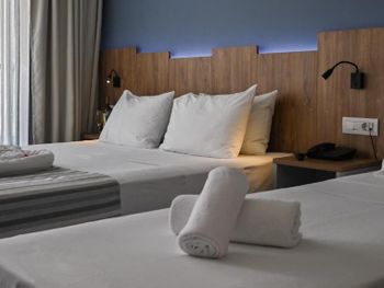 К сожалению, не всегда качественно убирались в номере. Для тех, кто захочет отдохнуть у бассейна при отеле - полотенца не входят в стоимость, можно взять полотенце в аренду за 5 евро на весь период.