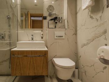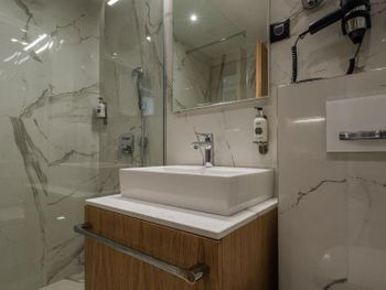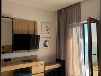 Очень хороший, современный отель. Доброжелательный и отзывчивый персонал. У нас был номер с прекрасным видом на море. Были в отеле в феврале, посетителей было мало, поэтому на завтрак вместо шведского стола предлагались закуски на стол и один из видов омлета/яичницы на выбор, было вкусно
