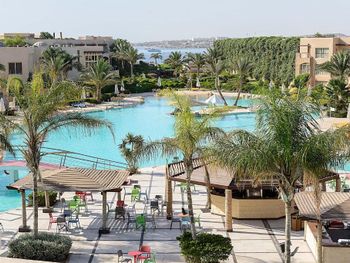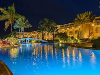Завышенная звездность отеля. Не тянет на 5ку, это такая крепкая 4ка по египетски, или хорошая свежая 3ка в Турции или Греции. Отсюда весь остальной негатив, если бы мы четко понимали, что ждать не было бы завышенных ожиданий т.к. опыт полноценных 5* в Египте имеется. 1. Отель устал. Нужен ремонт, чувствуется "тусклый блеск" былой славы. Номера хорошие (см выше), но уже очевидно пора сделать косметический ремонт в ванных и срочно менять двери. Также ремонта требуют бассейны, душевые стойки на пляже (половина не работает или работает через раз, туалеты на пляже (ручка двери в туалете остающаяся в руках, это конечно провал). Конференц зал - весь дряхлый и потрепаный, в бильярдной столы с порваным сукном в общем ремонт нужен и срочно, либо понижайте звездность до 4*, а то и 3* 2. Проблема с тараканами - в 5м корпусе на ежедневной основе (есть фото и персоналу говорили). В коридоре вдоль номеров каждое утро нас встречали трупы насекомых, судя по запаху дихлофоса вечером их регулярно травят. Пару раз ловили в номере уже подыхающего (очевидно бежали от отравы в коридоре) - предположение что конкретно в 5-6 корпусе они бегут из соседнего отеля, потому что в коридорах других корпусов не видели и не чувствовали запах отравы. 3. Уборка номеров - если не пинать через ресепшн, уборка делается спустя рукава. Когда пожаловались на ресепшн и влажную уборку началиделать и халаты и тапочки выдали и подстилки для ног стали менять.. 4. Питание - тут точно отель не тянет на 5*, как писал выше крепкая тройка либо 4ка. Каждый прием пищи можно найти что поесть, но в целом выбор был весьма скуден. Фрукты зачастую недозрелые. Кстати удобный и неплохой ресторанчик на пляже (делают пиццу каждый обед), мы в итоге не ходили в основной в обед, питались на пляже. 5. Интернет - это вообще позор для современного отеля. Бесплатный в лобби не тянет толком даже мессенджеры, по номерам только платный, хотя в других отелях (тем более в 5*) в стоимость включен по терр отеля и на пляже.