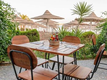 Ужасная еда! я не знаю, как можно так испортить продукты. Очереди за едой, наглые арабы вклиниваются в очереди и персонал это поощряет. Каждый приём еды ругаешься. На завтраке стоишь 20 минут за омлетом. Позавтракал - считай, устал. Очень навязчивые продавцы на пляже, при этом качество услуг в отеле за предлагаемую стоимость - низкое. Ни в коем случае не берите услуги салона красоты и СПА, нормальный только массаж, морские экскурсии с пляжа тоже не стоят своих денег и вашего времени. Лучше съездить куда-то ВНЕ отеля. Персонал отеля просто рулетка, один улыбнётся, второй нахамит. Конечно же, проблемы решать не спешат, вы же скоро уедете, зачем))) вокруг отеля ничего нет, до ближайших кафе и магазинов ехать на такси. В номере не закрывалась балконная дверь, пользовалась сейфом даже на ночь.