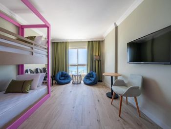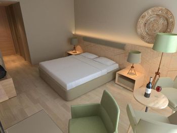 Отель на хорошем уровне, несмотря на цену. С балкона открываются отличные виды на территорию и эгейское море. Питание отличное, напитки 50/50 местный алкоголь и импортный. Дали бесплатное повышение номера до 2-х комнатного семейного! Свой пляж возле отеля песочный, довольно мелкий, вода чистая и прозрачная.