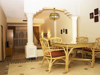 Кухня не вкусная .Совсем.Голодным не будешь,но в первый раз удовольствия от еды - НОЛЬ.Плюс именно здесь начал болеть желудок очень сильно и у меня и у партнёра.Номера убирают по египетским меркам.Полы были в песке все время.Замка в туалет небыло.При выезде из отеля свое такси если вызываешь,что в 2 раза дешевле чем отельное,надо заморочится ,чтоб пропустили водителя на территорию.