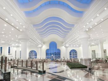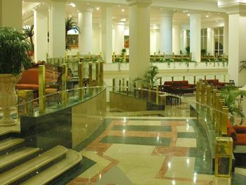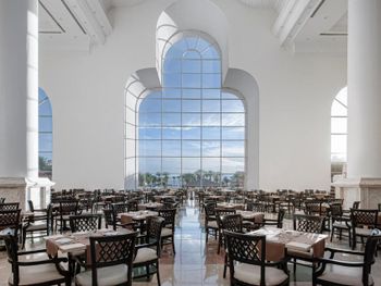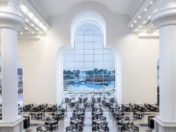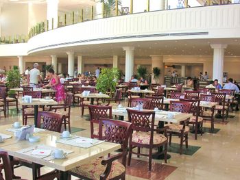 Отель позиционирует себя как 5*... по факту это огромный 3-х звёздочный отель с убитым зданием и номерами. Все обшарпано, трещины, штукатурка обсыпается, везде рыжие разводы от потеков воды. Сервис в отеле отвратительный, персонал в основном хамский, особенно ресепшен! Везде грязь, в столовой и ресторанах "А-ля карт" тарелки жирные со сколами, столы не протирают, а просто смахивают на пол крошки и все. Салфеток не дают, приходилось проводить спецопеоации по поиску салфеток и приборов. Еда однообразная, солёная и не сказать, что вкусная. Медленные обслуживание и готовка создают очереди на 20-50 мин для того, что взять еду (особенно бар на пляже - битва за еду и борьба за выживание...).