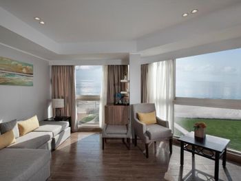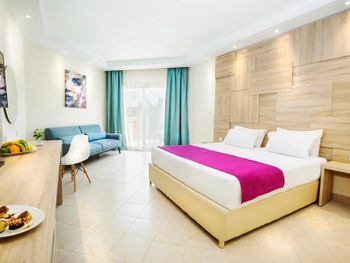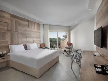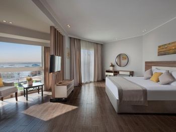 Отличная территория, много бассейнов, горки для взрослых и детей! Красивое море! Очень хороший номер, современный, удобный, хорошая кровать и удобная софа для ребенка. Вид с балкона на бассейн и море- замечательный. Хороший отель, за небольшие деньги!
