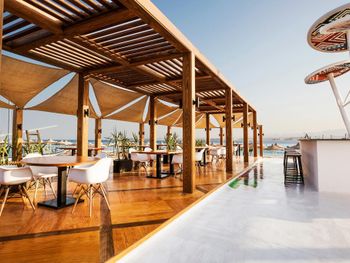 Хорошая и качественная еда, большая открытая терраса перед главным рестораном, где сервируют завтрак/обед/ужин. Комфортный пляж с песком.